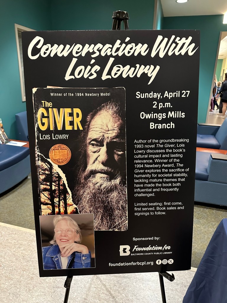 I saw a post on Facebook for a suggested event – a free book signing and conversation with Lois Lowry, the author of the famed book “The Giver”. This was one that I absolutely did not want to miss. I typically don’t go to events alone, but I mustered up the courage to go by myself.