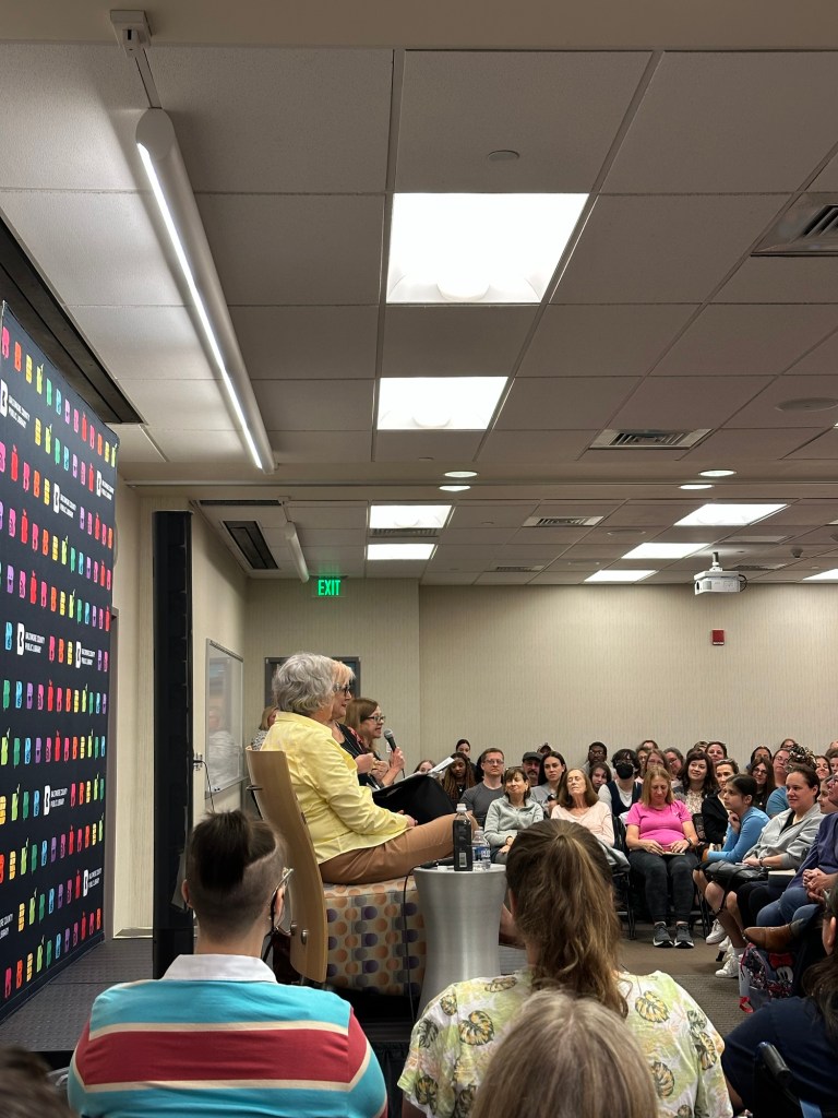 I also loved that she talked about the emails and letters she’s received over the years. She received a rude email from a teenage boy, telling her to never write another book & she may not have time to write another because she’s old. She decided to have some fun with her response – she told them she assumed they must be a third grader or between 8-9 years old and that the book was meant for more mature audiences.